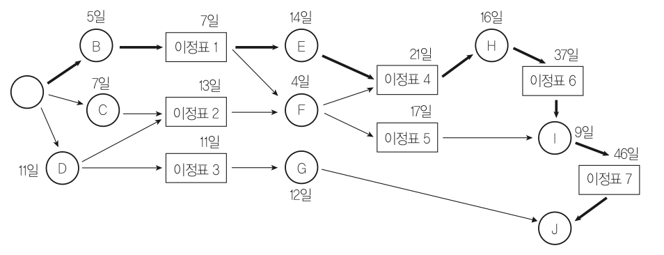 - 결정 경로, 작업에 대한 경계 시간, 작업 간의 상호 관련성 등을 알 수 있다.