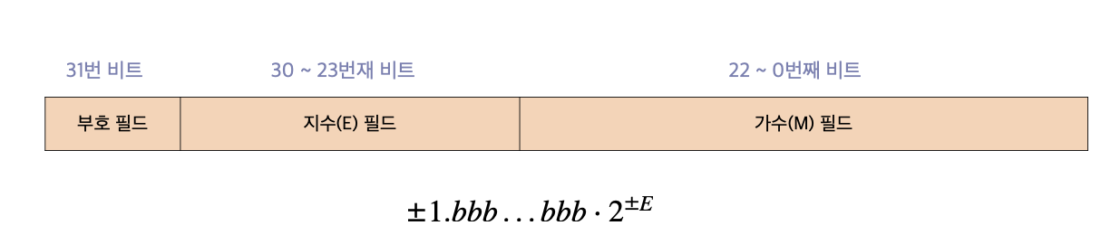 나머지 31개 비트를 지수 필드와 가수 필드로 분리한다. - 지수(E) 필드는 값의 범위를 나타내는 2의 거듭제곱 수를 저장한다.